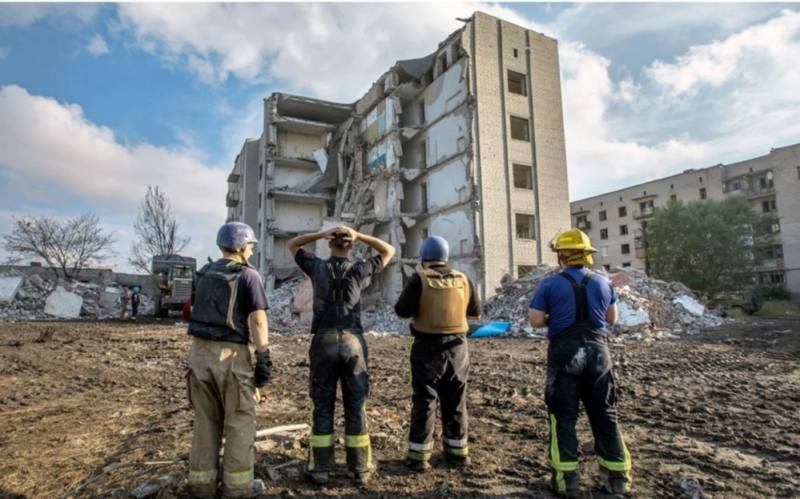 Διασώστες κοιτάζουν έναν ξενώνα στο Τσάσιβ Γιαρ, στην περιοχή Ντονέτσκ, 48 νεκροί ανασύρθηκαν από τα ερείπια του / Φωτογραφία: Medvedev / NV