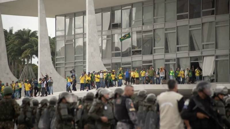 Οι δράσεις της 8ης Ιανουαρίου 2023 μιμούνται εκείνες της ορδής των Αμερικανών νεοφασιστών δύο χρόνια πριν, σχεδόν με το ίδιο σενάριο. Η εισβολή χιλιάδων μπολσοναριστών στους χώρους του Εθνικού Κογκρέσου, του Ανώτατου Δικαστηρίου (STF / Supremo Tribunal Federal) και του Παλατιού Πλανάλτο, που μεταδόθηκε ζωντανά από το εθνικό τηλεοπτικό δίκτυο, είναι εξαιρετικά σοβαρή. Αποτελούν το επιστέγασμα ενός πραξικοπηματικού εγχειρήματος, το οποίο με πρόσχημα την υποτιθέμενη νοθεία στις κάλπες, προκάλεσε την αναταραχή, τη βία και τους βανδαλισμούς.