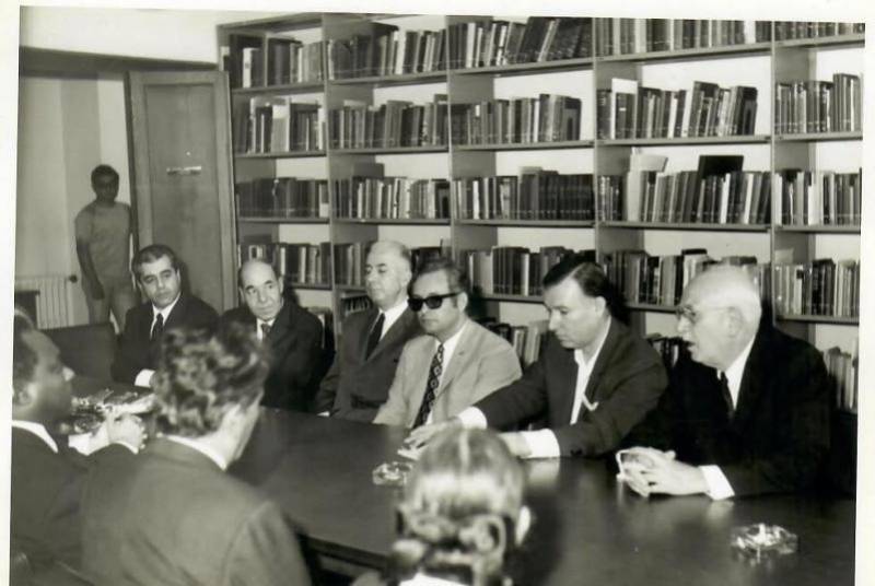 Από τη συνέντευξη Τύπου που σηματοδότησε την κυκλοφορία του Δελτίου του Ινστιτούτου Παλαιστινιακών Σπουδών [Institute for Palestine Studies], 7 Απριλίου 1971 (δεύτερος από δεξιά)