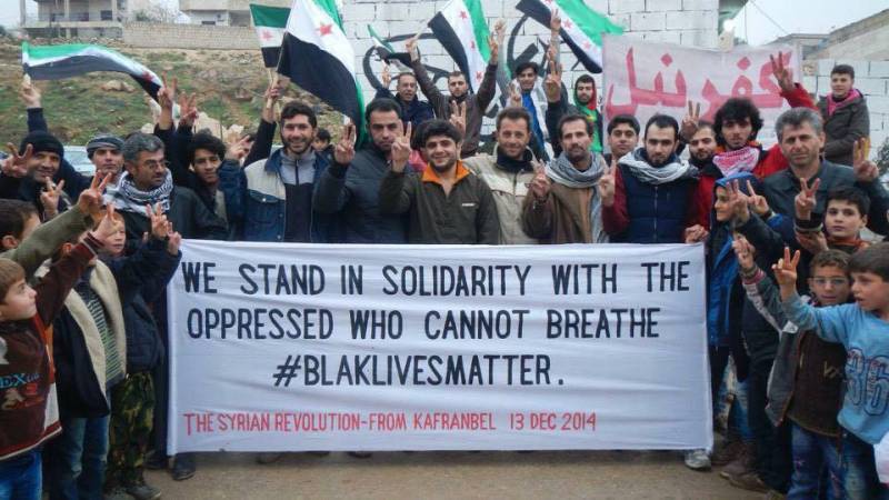 «مظاهرة بمدينة كفرنبل, ادلب, تطالب الفصائل بعدم التدخل بشؤون المدنيين، وتطالب جبهة النصرة بالإفراج عن المعتقلين الذين اعتقلتهم - Demonstration in Kafer Nobul, in Idlib, demanding the factions not to interfere in civilians’ affairs and demanding Jabhat Al-Nusra the release of the detainees that they arrested»,سوريا الحرية للأبد - Syria Freedom Forever, 21 Μαΐου 2016. Σ’ αυτό το blog υπάρχει πλούσια αρθρογραφία για τις λαϊκές κινητοποιήσεις υπέρ της δημοκρατίας, της ανεξιθρησκίας/εκκοσμίκευσης και υπέρ των δικαιωμάτων των γυναικών στις περιοχές που ελέγχονται από τις ισλαμιστικές ομάδες.