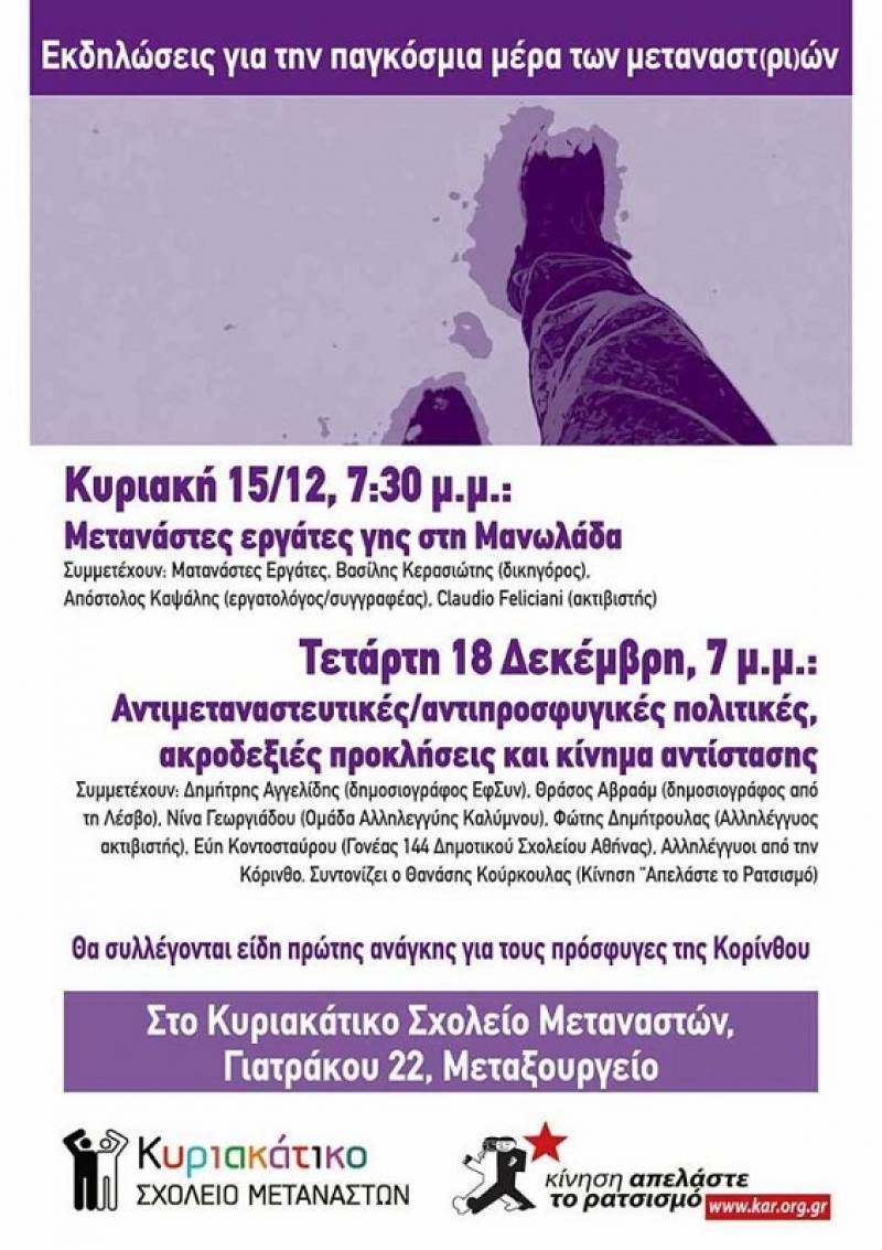 Εκδηλώσεις για την παγκόσμια μέρα των μεταναστ(ρι)ών