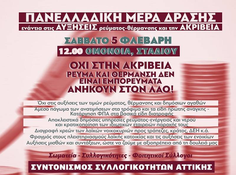 Συνεχίζουμε τις συγκεντρώσεις και παρεμβάσεις στις γειτονιές μας ΣΥΝΤΟΝΙΖΟΜΑΣΤΕ ΜΕ ΣΥΛΛΟΓΙΚΟΤΗΤΕΣ ΑΠ’ΟΛΗ ΤΗΝ ΕΛΛΑΔΑ και δίνουμε το 1ο πανελλαδικό ραντεβού μας το Σάββατο 5 Φλεβάρη στην Αθήνα και σε όλες τις πόλεις της Ελλάδας