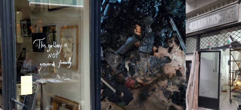 Η συγκεκριμένη γκαλερί, σε μια περιοχή που το Ισραηλινό κεφάλαιο διαρκώς επεκτείνεται, έχει δεχτεί πολλές φορές λεκτικές απειλές από υποστηρικτές της γενοκτονίας στην Παλαιστίνη, λόγω αυτονόητης επιγραφής στην βιτρίνα: The gallery is not genocide friendly (αυτή η γκαλερί δεν είναι φιλική προς τη γενοκτονία).