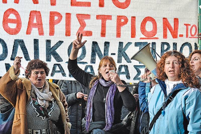 Στις 6 κα 7 Φλεβάρη απεργούν οι καθαρίστριες των σχολείων. Η φωτο είναι από παλιότερη κινητοποίηση