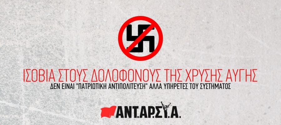 Ό,τι και να κάνει το σύστημα, το αντιφασιστικό κίνημα χέρι - χέρι με το λαϊκό, εργατικό και νεολαιίστικο κίνημα με τους αγώνες του, με την οικοδόμηση ενός πανίσχυρου αγωνιστικού μετώπου ρήξης, με την κοινή δράση των μαχόμενων δυνάμεων της αριστεράς, θα συντρίψει τους φασίστες, θα αντιμετωπίσει την κρατική και παρακρατική βία, θα ανατρέψει το μαύρο μέτωπο κεφαλαίου-ΕΕ-ΔΝΤ και το σύστημα της εκμετάλλευσης, όλα αυτά που γεννάνε και ενισχύουν διαρκώς τη φτώχεια, την καταπίεση, τον φασισμό.