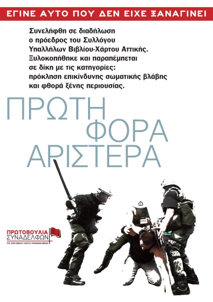 Ανάμεσα σε αυτούς που αθωώθηκαν είναι ο σύντροφός μας Μάνθος Ταβουλάρης, Πρόεδρος του Σωματείου Βιβλίου-Χάρτου Αττικής, που είχε συλληφθεί στην προσπάθειά του να προστατέψει τους συναδέλφους του από τις δυνάμεις καταστολής.