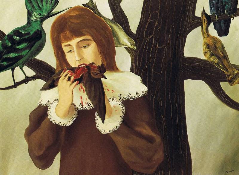 Πίνακας: René Magritte, Jeune Fille Mangeant un Oiseau (Le Plasir) [1927]